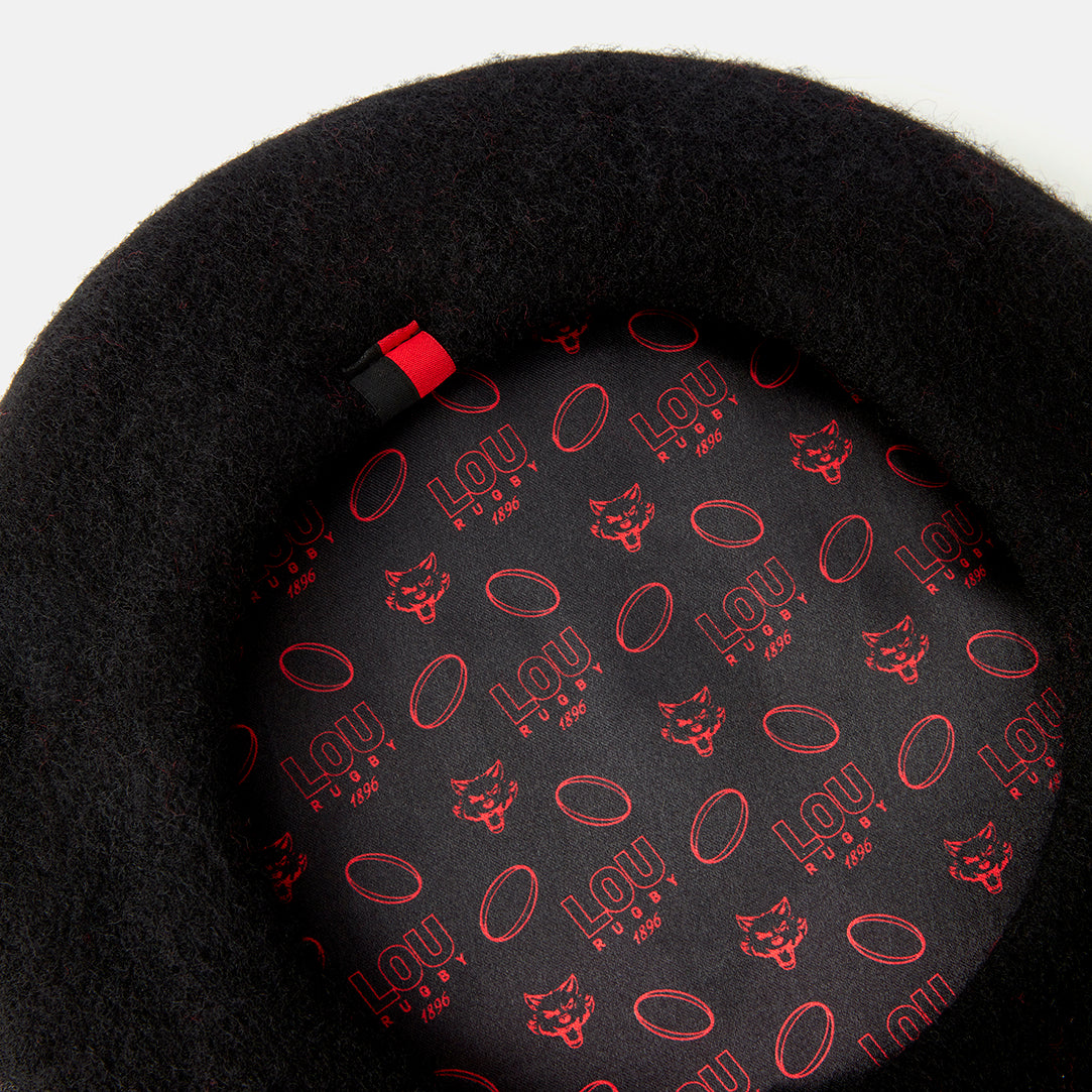Béret officiel du LOU Rugby, disponible en noir ou rouge.
